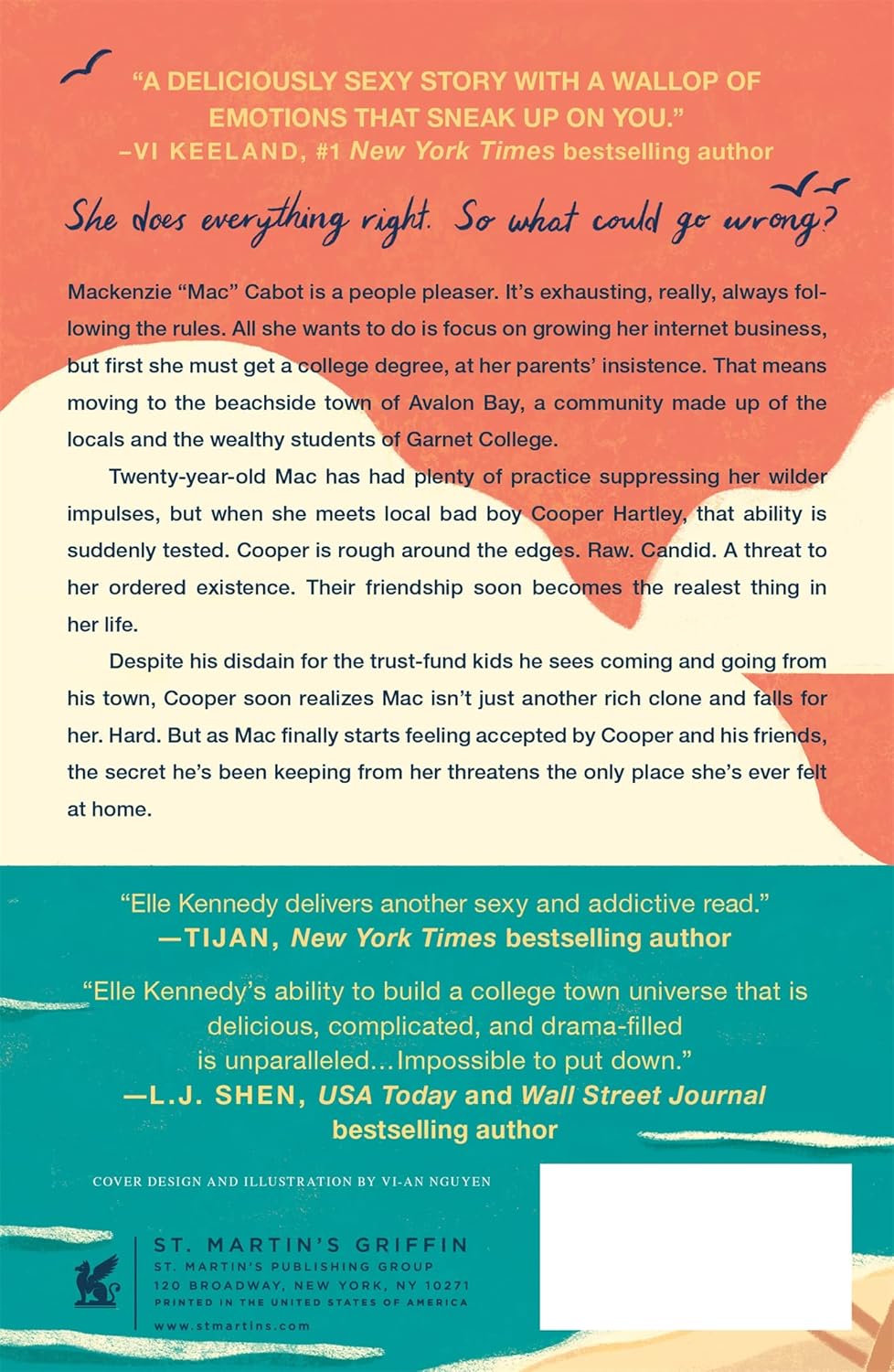 Mackenzie “Mac” Cabot is a people pleaser. Her demanding parents. Her prep school friends. Her long-time boyfriend. It’s exhausting, really, always following the rules. All she wants to do is focus on growing her internet business, but first she must get a college degree at her parents’ insistence. That means moving to the beachside town of Avalon Bay, a community made up of locals and the wealthy students of Garnet College.