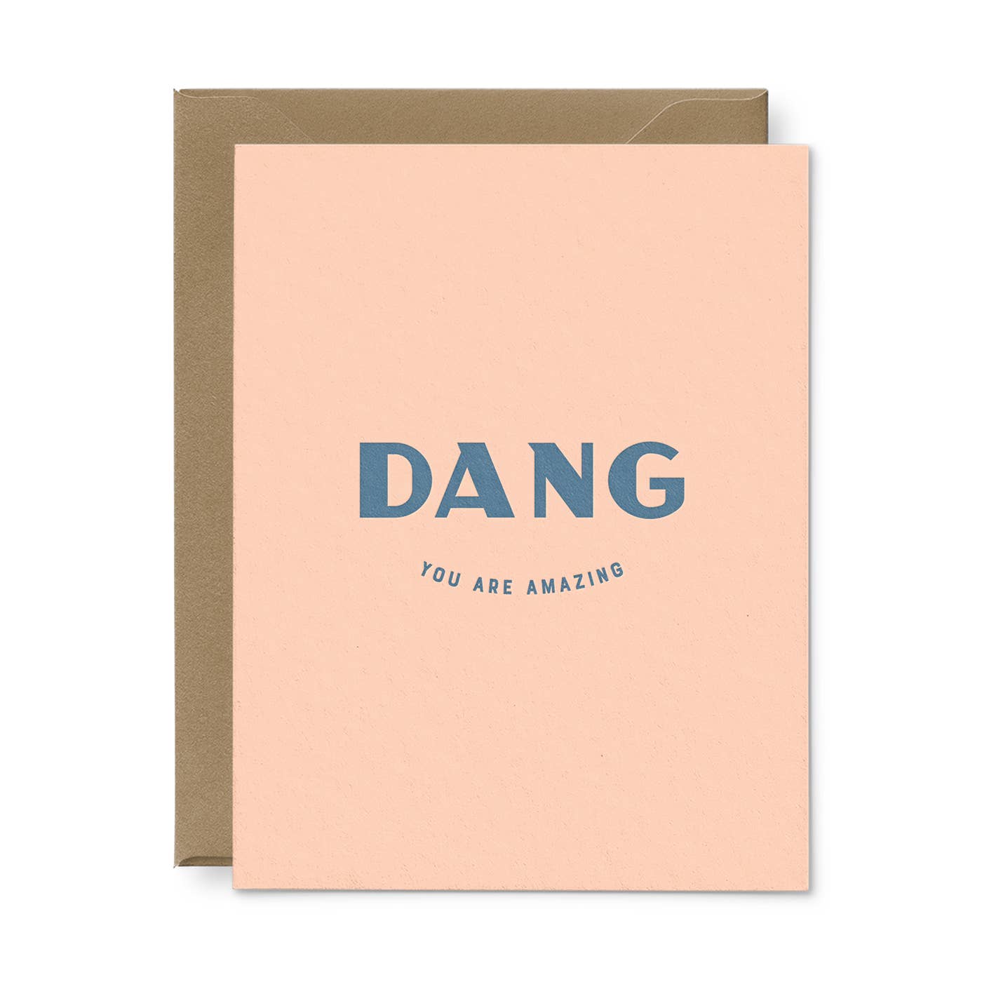Dang! You are amazing! Well, we already knew that ;) This letterpress printed greeting card is a great card to tell someone how much you love them, thank them for something amazing they did, or just to tell a friend you appreciate them. This all occasion card is blank inside so you tell them exactly why you think they are so amazing.