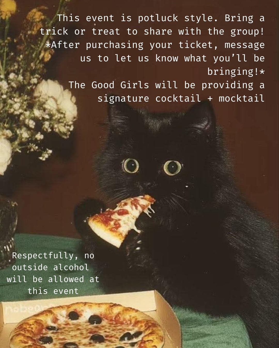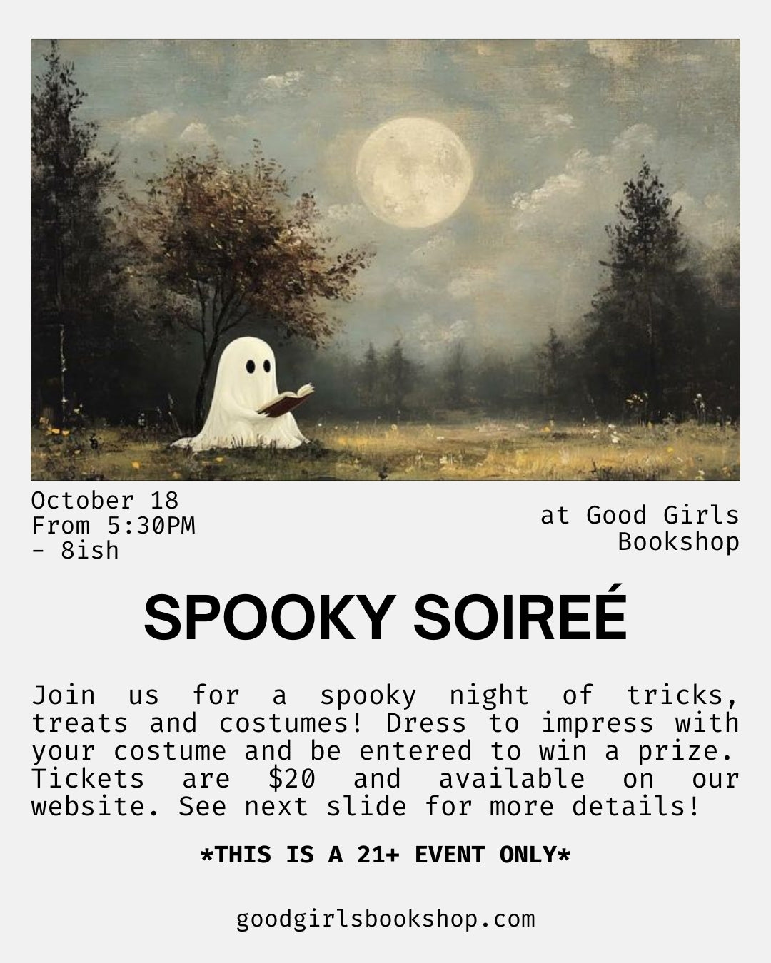 This event is potluck style. Bring a trick or treat to share with the group! *After purchasing your ticket please email us (hello@goodgirlsbookshop.com) and let us know what you'll be bringing!