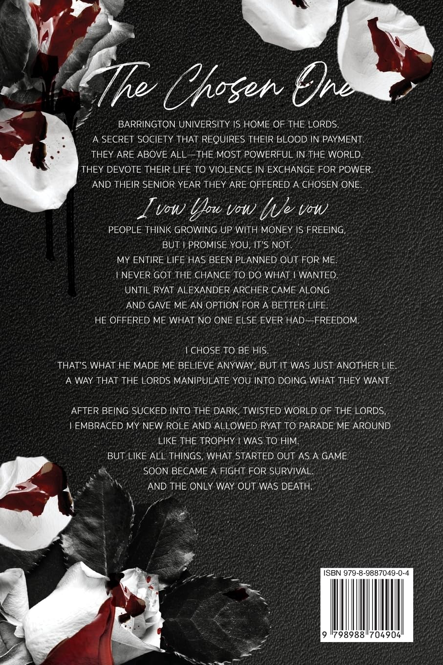 Barrington University is home of the Lords, a secret society that requires their blood in payment. They are above all-the most powerful men in the world. They devote their lives to violence in exchange for power. And during their senior year, they are offered a chosen one.