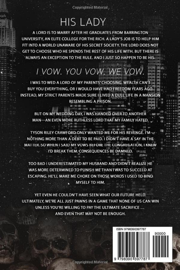 A Lord is to marry after he graduates from Barrington University, an elite college for the rich. A Lady’s job is to help him fit into a world unaware of his secret society. The Lord does not get to choose who he spends the rest of his life with. But there is always an exception to the rule. And I just so happen to be his.